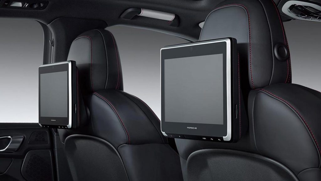 Tako je zapravo smiješna i zadnja Porscheova strategija da privuče nove potencijalne mušterije. Dok su Porsche nekad prodavale brojke: što manje sekundi do 100kmh i broj konjskih snaga, danas novi prospekt za Porsche izgledao kao katalog računalne opreme. Porsche Exclusive, nešto što se zove “personalizacijski odjel” je tako otkrio nove igračke za Macana, Cayennea i Panameru: tako oni sada nude multimedijalni sustav za zabavu putnika na stražnjem sjedalu (nekad bi ta sintagma “putnici na stražnjem sjedalu Porschea” izazvala salvu smijeha). Sustav se sastoji od dva 10.1″ zaslona osjetljivih na dodir ugrađenih u prednja sjedala. Tu je DVD player, dva USB porta, utor za SD memorijske kartice i HDMI port. Od ostalih “điđa” tu je ugrađena kamera za video telefoniju i nešto što se zove WiFi Crosslink Streaming koji služi streamingu videa na ekrane i zvuka na slušalice putem bežične mreže i Bluetootha.