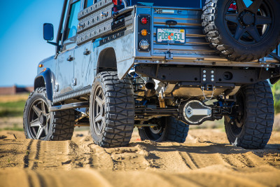 Kao što vanjski izgled sugerira, ispod površine nalaze se ozbiljne stvari, počevši od 6,2-litrenog LS3 V8 motora koji maksimalnu snagu od 430 KS šalje do svih kotača (ili samo stražnjih) putem 6-stupanjskog automatskog prijenosnog sustava. Ovjes je temeljito modificiran u skladu s off-road tematikom, s kojom ruku pod ruku idu i razni detalji poput eksternog kaveza, WARN vitla na prednjem dijelu i hrpetine LED lampi. Kabina nije nimalo rudimentarna kao što biste to možda očekivali od vozila ovakvog tipa, naprotiv. Visoka cijena znači i da će putnici u ovom Defenderu uživati u kožom prekrivenim i grijanim Corbeau sjedalima s dijamantnim uzorkom, infotainment sustavu s ekranom osjetljivim na dodir, navigaciji, klima-uređaju, pa čak i ambijentalnom osvjetljenju.