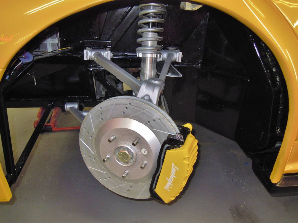 Dakle, Lamborghini Diablo koji to nije ima čak četiri cilindra manje od originala, a snagu prenosi na stražnje kotače putem Porscheovog G50 5-stupanjskog ručnog mjenjača. Kočnice su također skinute s Chevrolet Corvette, kao i gotovo kompletna elektronika.