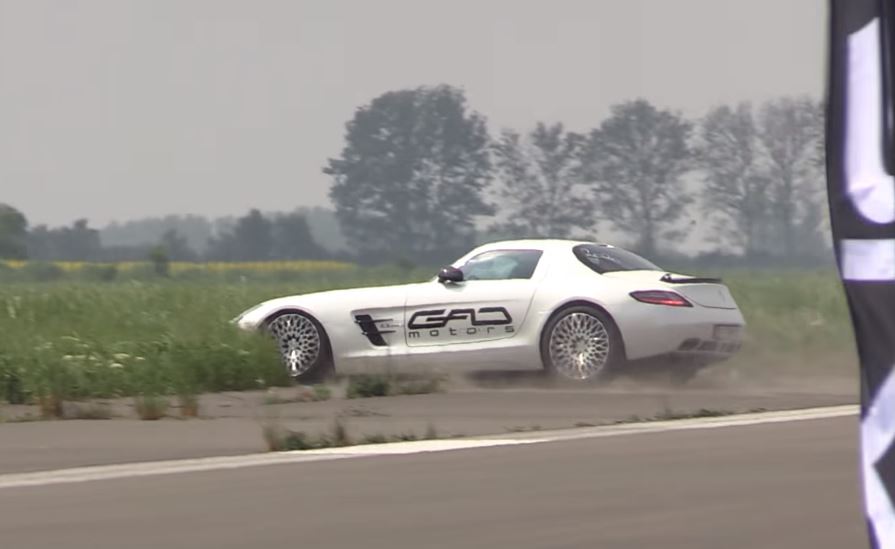 Nekoliko sekundi nakon starta izgubio je kontrolu i završio u visokoj travi izvan piste. Na sreću jedina šteta nanesena je egu vlasnika. Dobio je drugu priliku kako bi pokazao što njegov SLS AMG može, no samo je potvrdio već viđeno. U opisu videa također stoji kako automobil u ubrzanju na pola milje (804 m) postiže izlaznu brzinu 300,73 km/h. Izvor: Auto Start